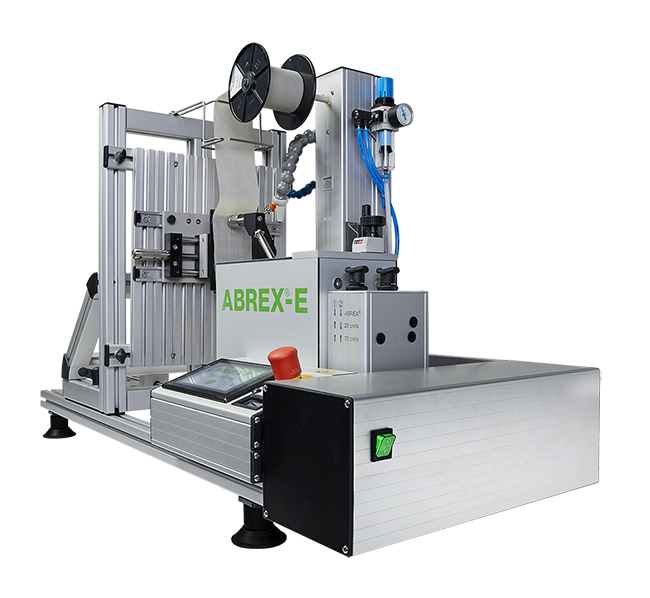 To fulfill the BWM GS97034-2 fingernail scratch test and BMW GS97034-3 shoe sole scratch test, a designated model ABREX®-E is supplied to the adequate scratch speeds of 20cm/s for the fingernail PMMA scratch and 70cm/s for the shoe sole scratch respectively.