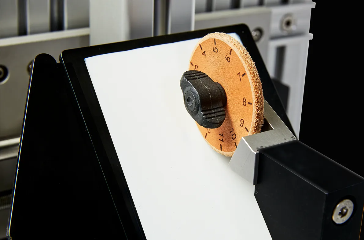 Together with the standardized leather and SBR discs of both 45 & 55 degrees geometry, ABREX®-E is proven to give repeatable scratch results.