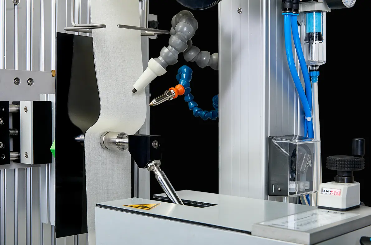 The special abrasion type, namely, ABREX®-ABRASION, is a soft-chemo-mechanical fingertip & hand abrasion tester.