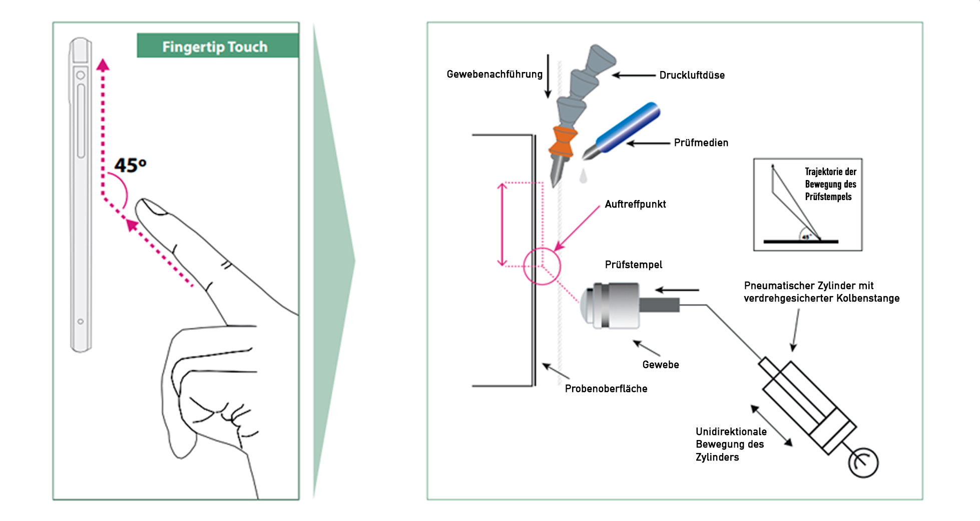 A 45° angle impact driven by a dynamic pneumatic cylinder attached with a viscoelastic fingertip under a defined load