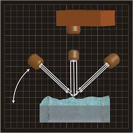 The topography values and the visual impression are not only measured but are also transformed by an analysis tool into various roughness parameters with standard deviation values. All measurements and calculations are carried out via interaction of the measuring head and the notebook, in which data storage, evaluation and analysis take place. Data can also be exported to other programs for further calculation.